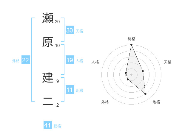 瀬原 建二さんの総格は41画の5点!