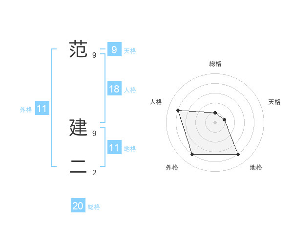 范 建二さんの総格は20画の1点!