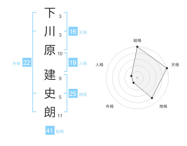下川原 建史朗さんを姓名の画数から五運を鑑定