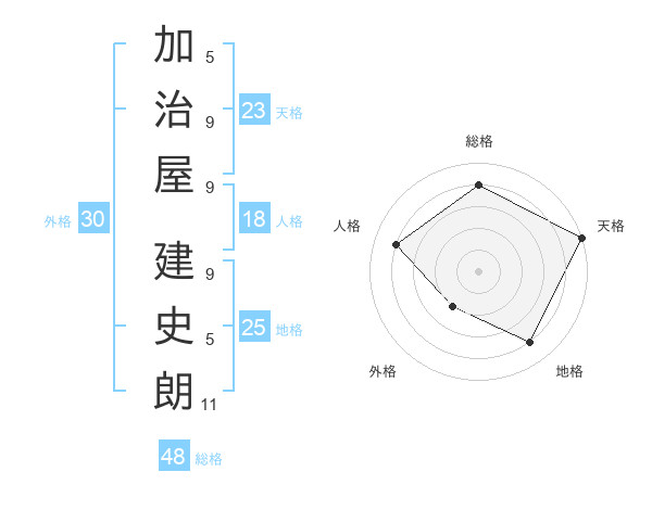 加治屋 建史朗さんを姓名の画数から五運を鑑定