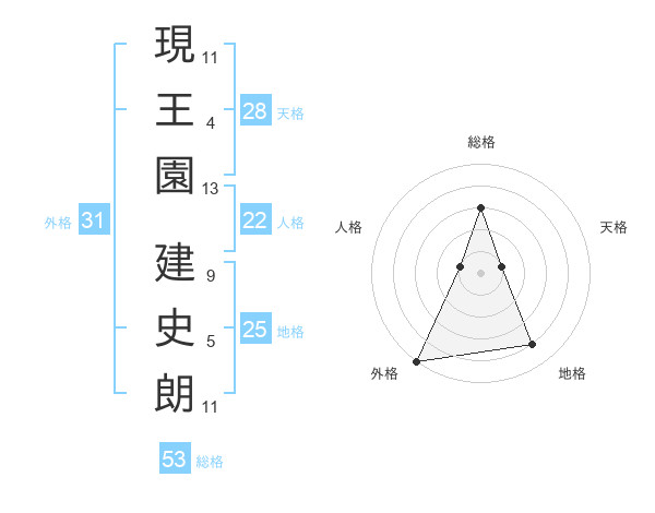 現王園 建史朗さんを姓名の画数から五運を鑑定