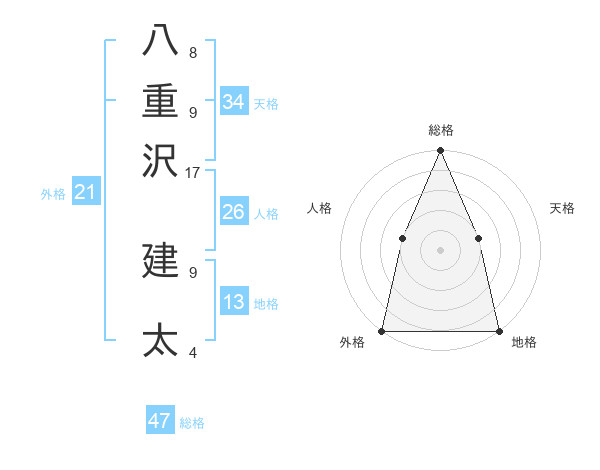 八重沢 建太さんの総格は47画の5点!