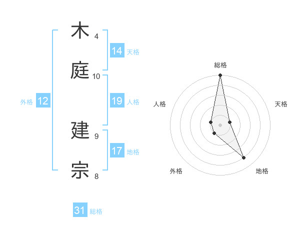 木庭 建宗さんを姓名の画数から五運を鑑定