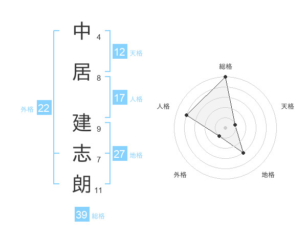 中居 建志朗さんの地格は27画の3点!