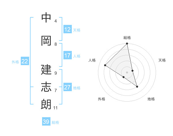 中岡 建志朗さんを姓名の画数から五運を鑑定