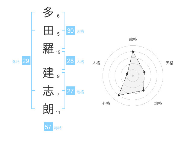 多田羅 建志朗さんの総格は57画の4点!
