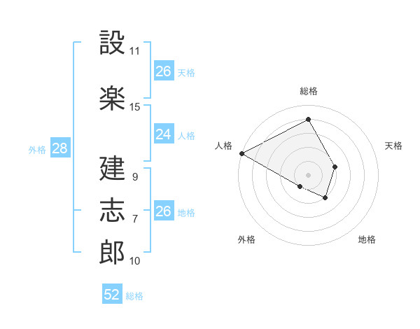 設楽 建志郎さんを姓名の画数から五運を鑑定