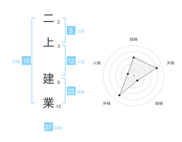 二上 建業さんの外格は15画の4点!