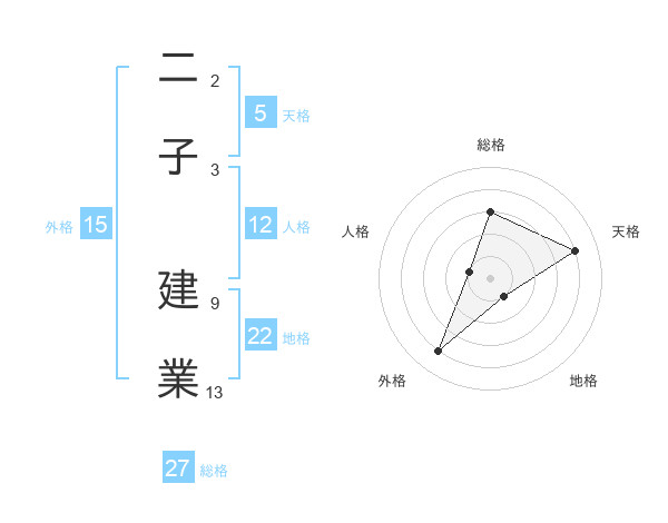 二子 建業さんの総格は27画の3点!