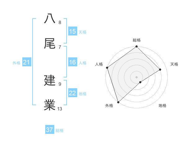 八尾 建業さんの総格は37画の5点!