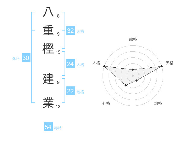 八重樫 建業さんを姓名の画数から五運を鑑定