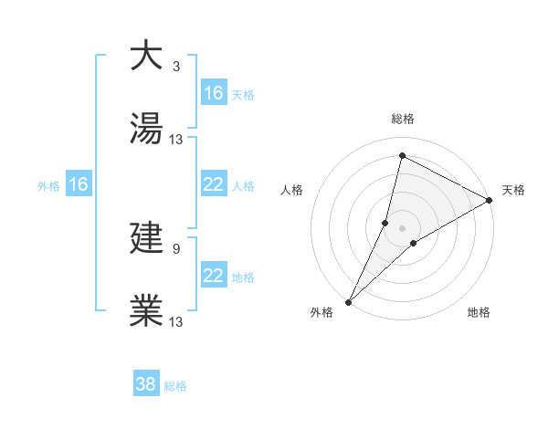 大湯 建業さんの総格は38画の4点!