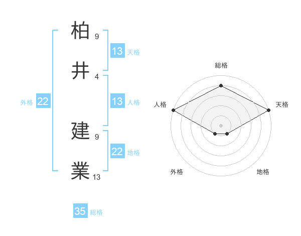 柏井 建業さんの総格は35画の4点!
