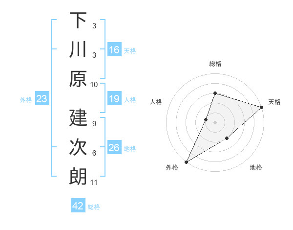 下川原 建次朗さんの総格は42画の3点!