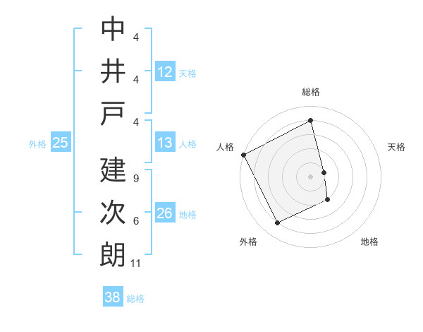 中井戸 建次朗さんを姓名の画数から五運を鑑定