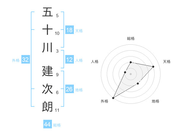 五十川 建次朗さんを姓名の画数から五運を鑑定