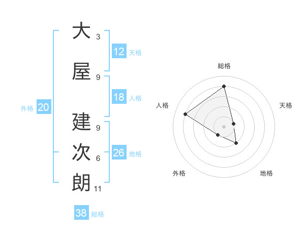 大屋 建次朗さんを姓名の画数から五運を鑑定