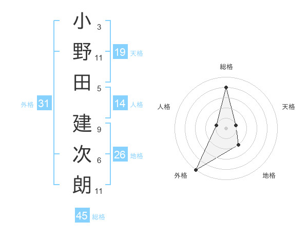 小野田 建次朗さんを姓名の画数から五運を鑑定