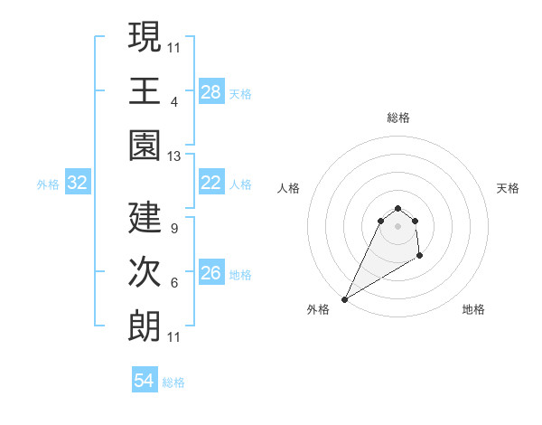 現王園 建次朗さんを姓名の画数から五運を鑑定