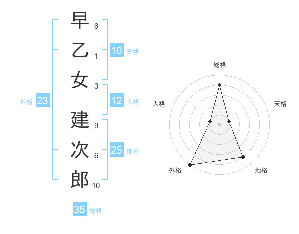 早乙女 建次郎さんを姓名の画数から五運を鑑定