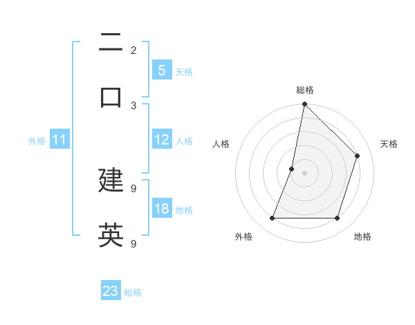 二口 建英さんの総格は23画の5点!