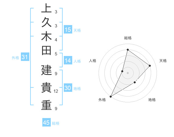 上久木田 建貴重さんの総格は45画の4点
