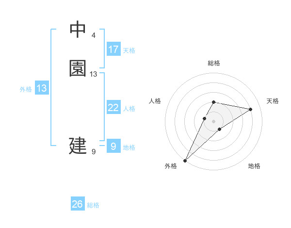 中園 建さんの総格は26画の2点!