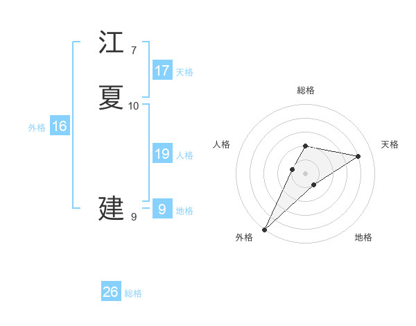 江夏 建さんの天格は17画の4点!