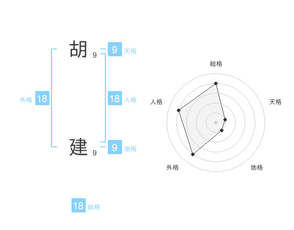 胡 建さんの総格は18画の4点