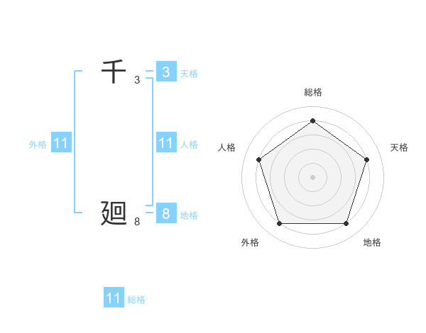 千 廻さんの外格は11画の4点!