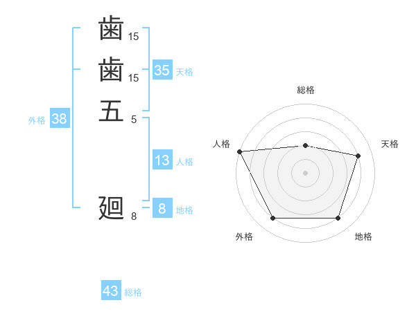 歯歯五 廻さんを姓名の画数から五運を鑑定