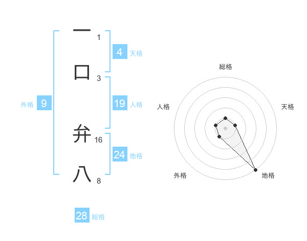 一口 弁八さんの総格は28画の1点!