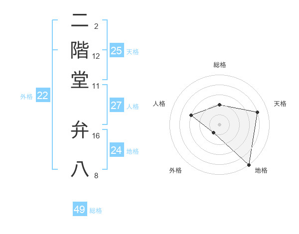 二階堂 弁八さんを姓名の画数から五運を鑑定