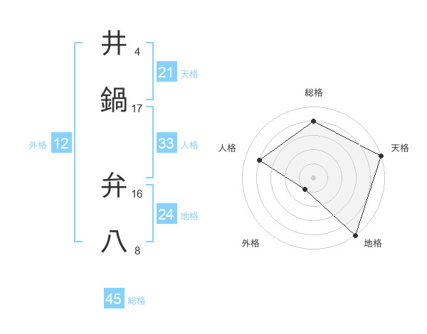 井鍋 弁八さんを姓名の画数から五運を鑑定