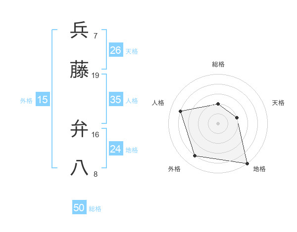 兵藤 弁八さんを姓名の画数から五運を鑑定