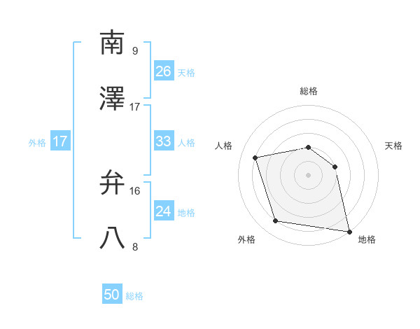 南澤 弁八さんの総格は50画の2点!