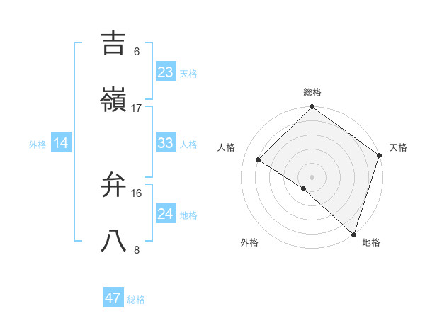 吉嶺 弁八さんを姓名の画数から五運を鑑定
