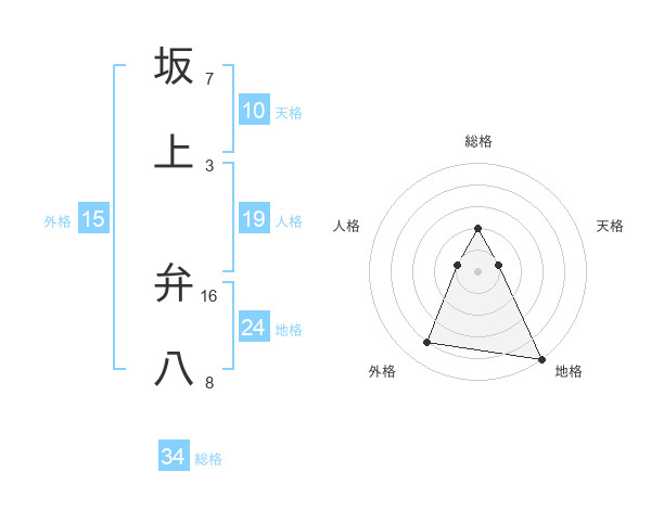 坂上 弁八さんの総格は34画の2点!