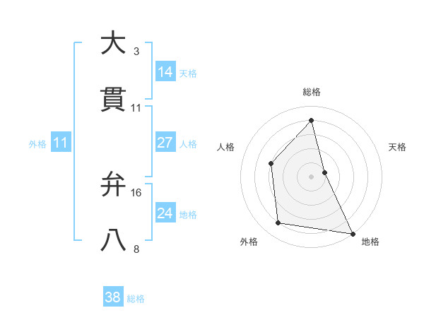 大貫 弁八さんの総格は38画の4点!