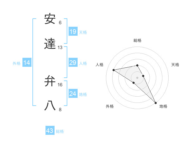 安達 弁八さんの総格は43画の2点!