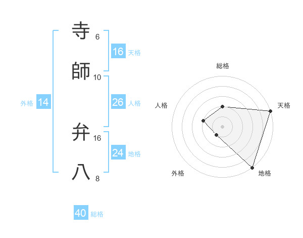 寺師 弁八さんを姓名の画数から五運を鑑定