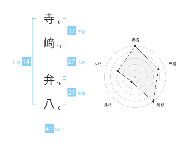 寺﨑 弁八さんの総格は41画の5点!
