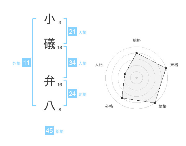 小礒 弁八さんの総格は45画の4点!