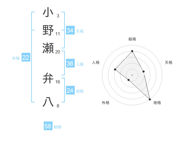 小野瀬 弁八さんを姓名の画数から五運を鑑定
