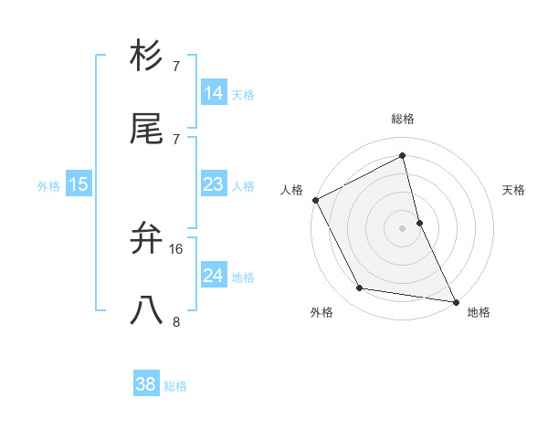 杉尾 弁八さんの総格は38画の4点!
