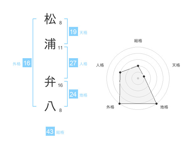松浦 弁八さんの総格は43画の2点
