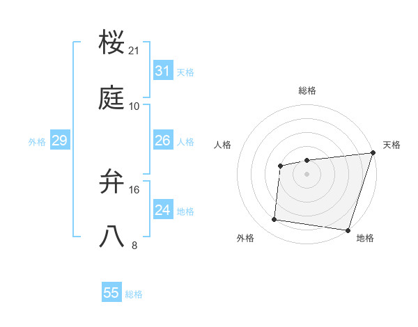 桜庭 弁八さんを姓名の画数から五運を鑑定