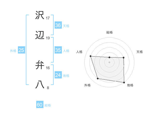 沢辺 弁八さんを姓名の画数から五運を鑑定