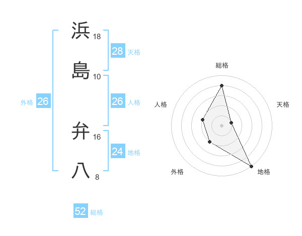 浜島 弁八さんを姓名の画数から五運を鑑定