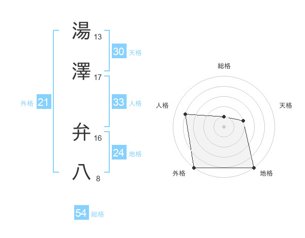 湯澤 弁八さんの外格は21画の5点!